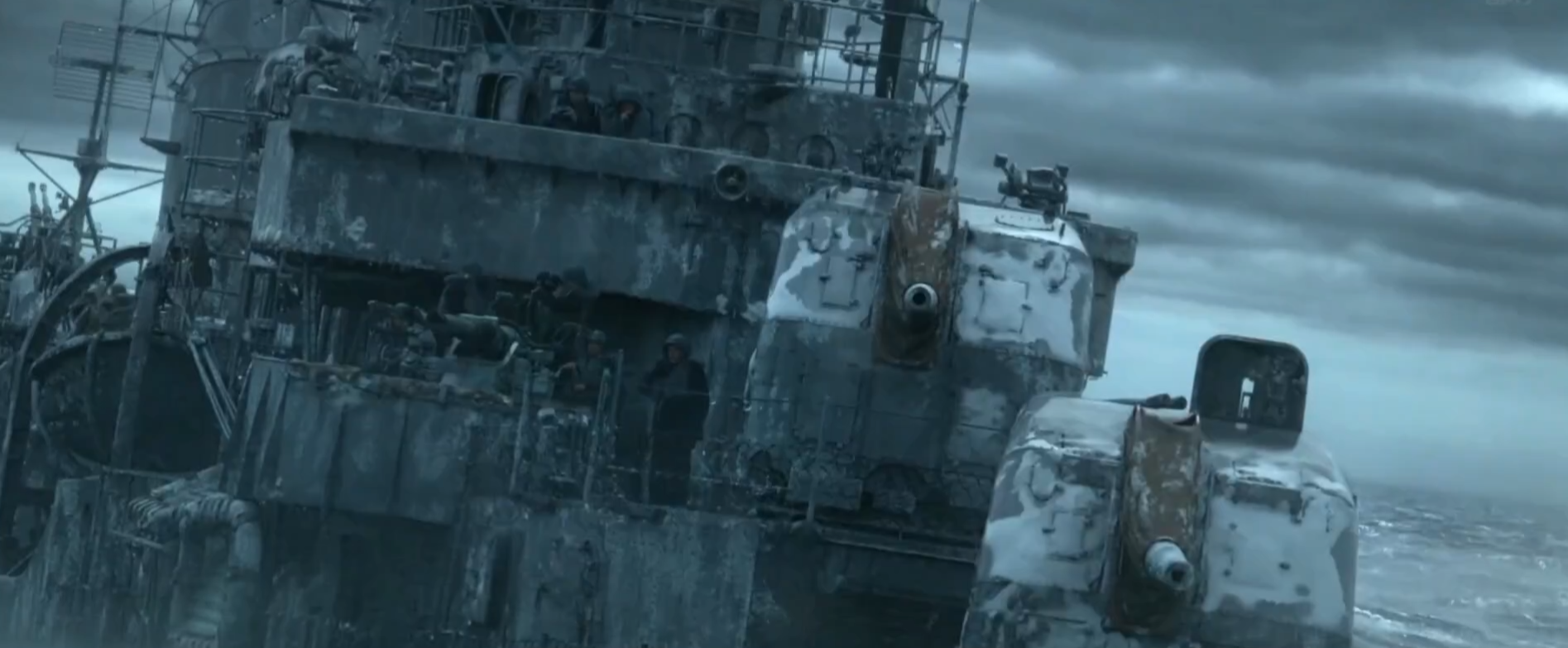 Это, пожалуй, самый большой недостаток фильма – он скомкан, как по времени, так и по наполнению. И хотя моментами ему удается передать атмосферу и эмоции, это чаще достигается за счет визуального ряда (мчащиеся эсминцы рассекающие форштевнем воду, или обледеневшие орудия)