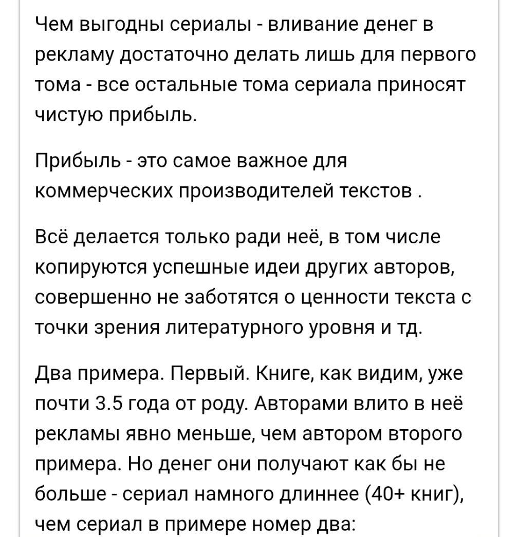 Пример 2. Книге 2.5 года. Во втором случае денег в первую книгу сериала влито намного больше. Более того, первые четыре книги изданы издательством в печатном виде, в одном томе (ведь каждая эл книга всего лишь по 400К знаков).