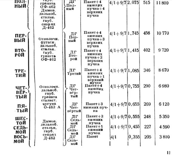 Первая имеет УГН до 63,3 град. и 9 зарядов - от полного до восьмого: