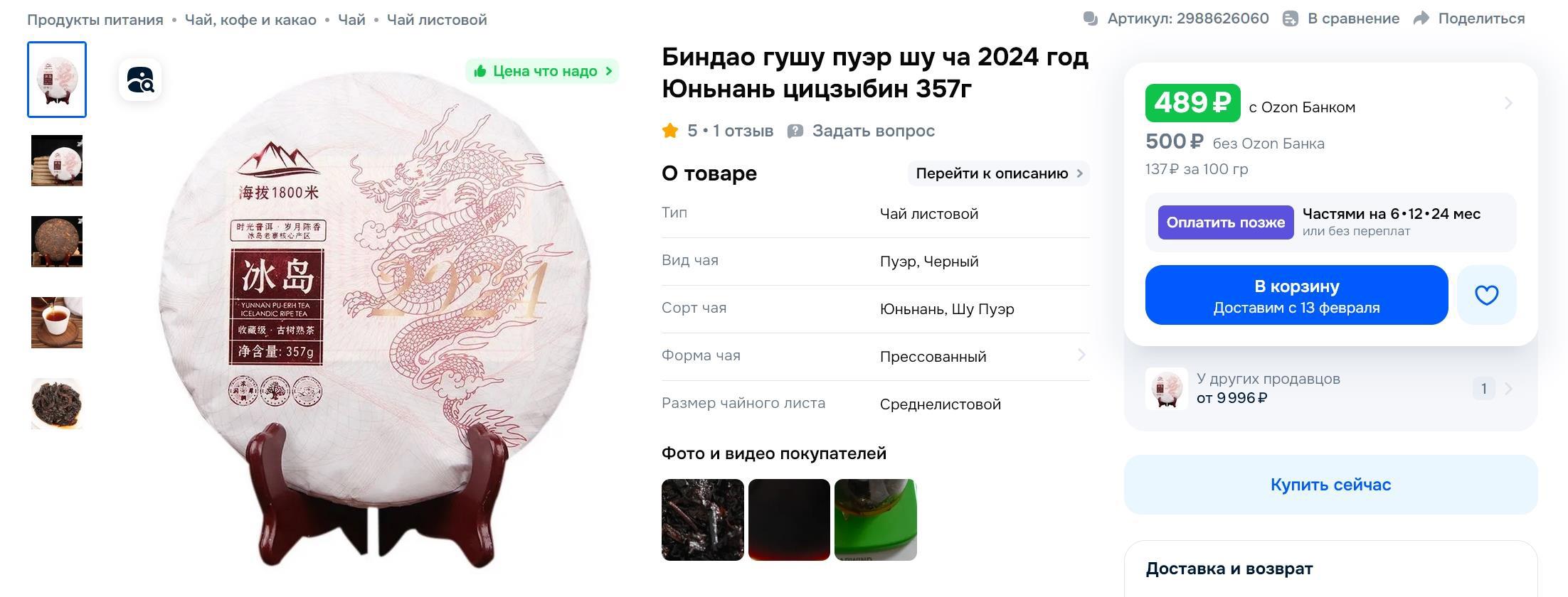 Контрольный чай у нас будет вот этот блинчик на 357г менее чем за 500руб: