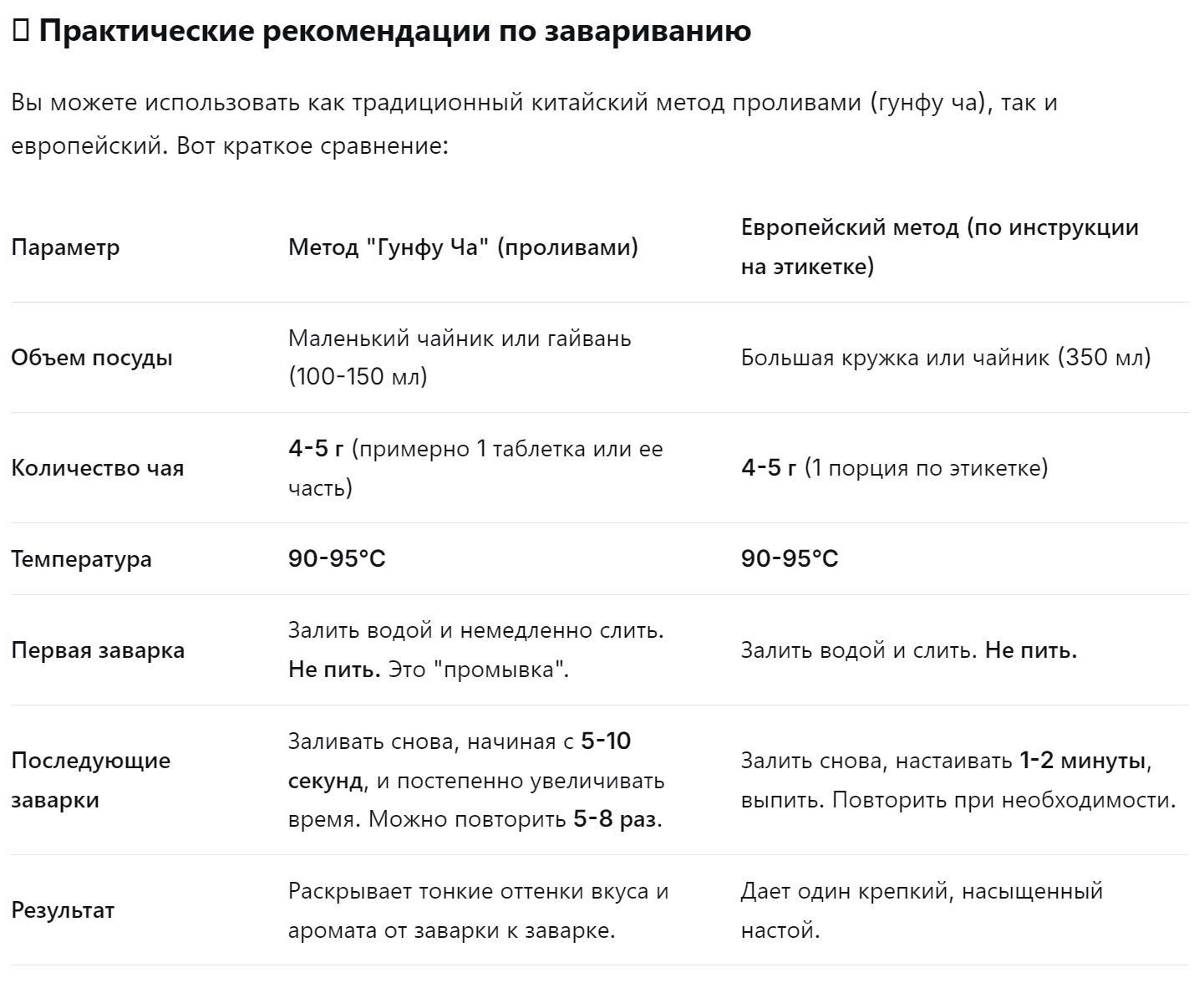 Обратите внимание на инструкцию первый пролив предлагают слить и потом заваривать повторно = чай будет слабее