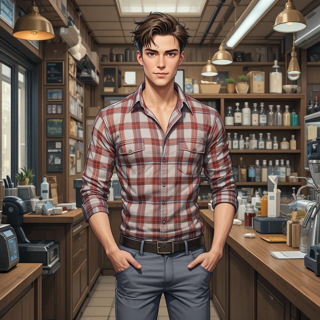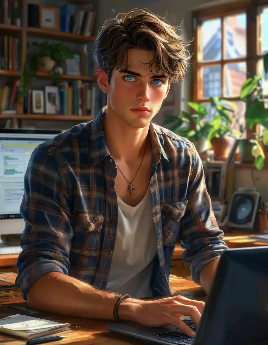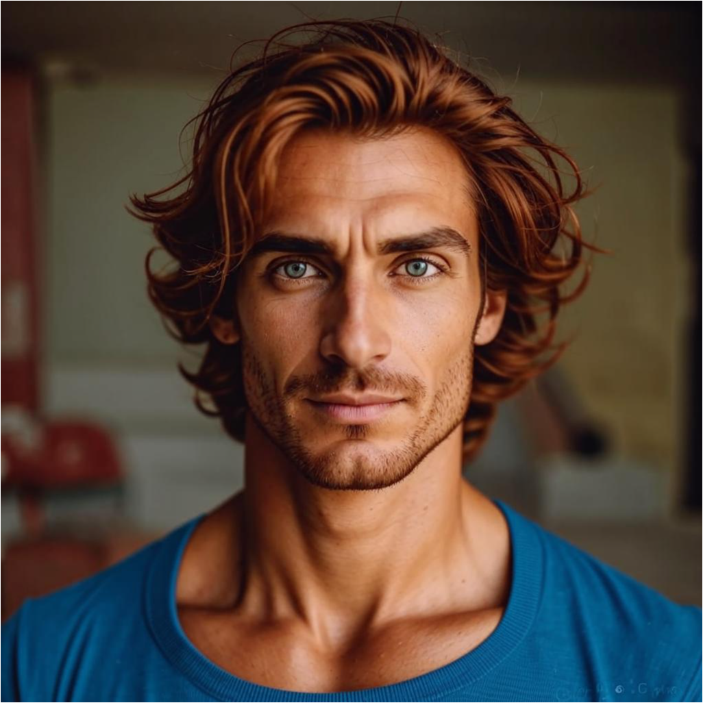 Автор: Михаил Барановский (Воин Космоса)высокий поджарый мускулистый стройный молодой мужчина лет тридцати с каштановыми короткими волосами и прозрачными синими глазами