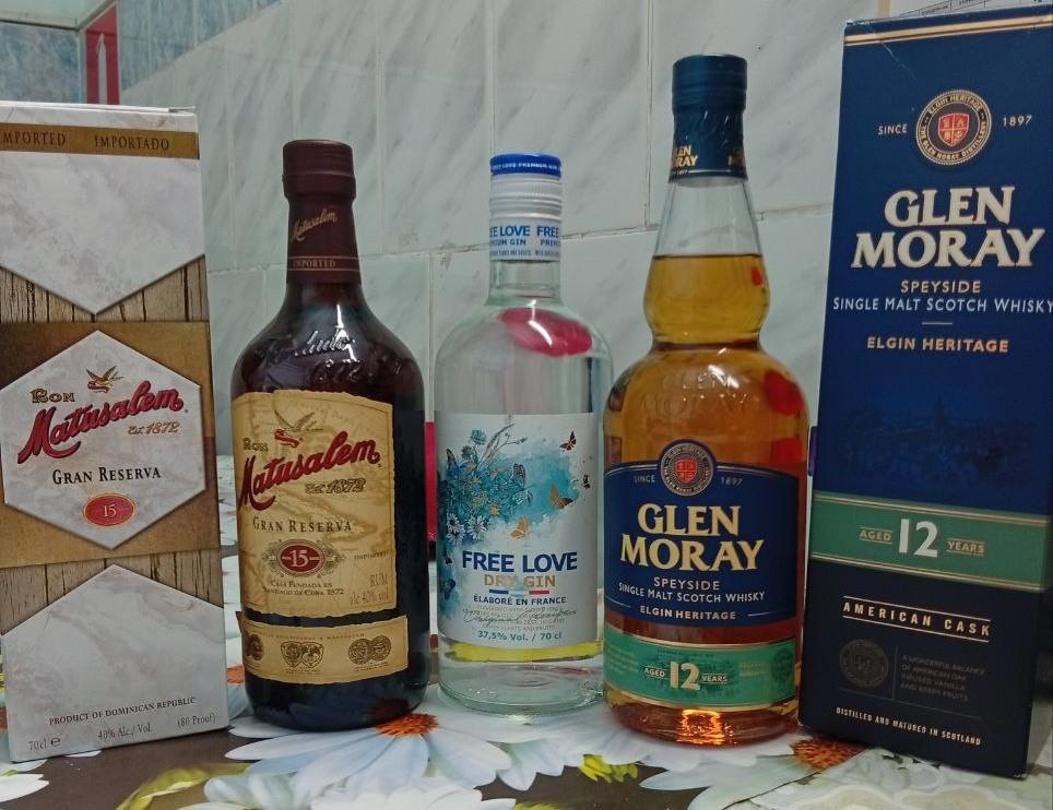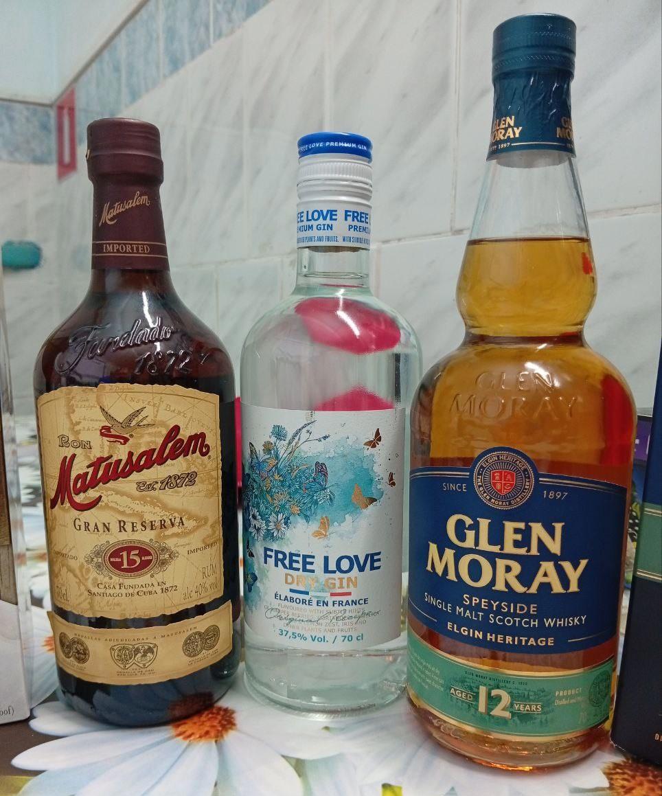 Односолодовый шотландский вискарь их Спейсайда, 12ти лет отроду, ну и французский джин, но это так - для коктейлей.