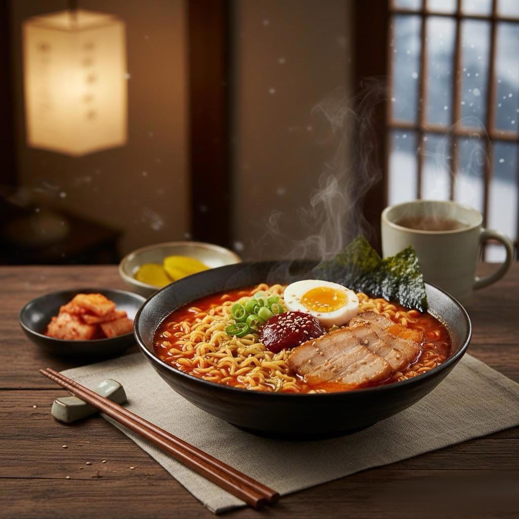 Рамён — корейский рамён отличается от японского не только буквой «ё», но и лапшой с бульоном. Он острее, проще по приготовлению и основан на быстром пряном бульоне.