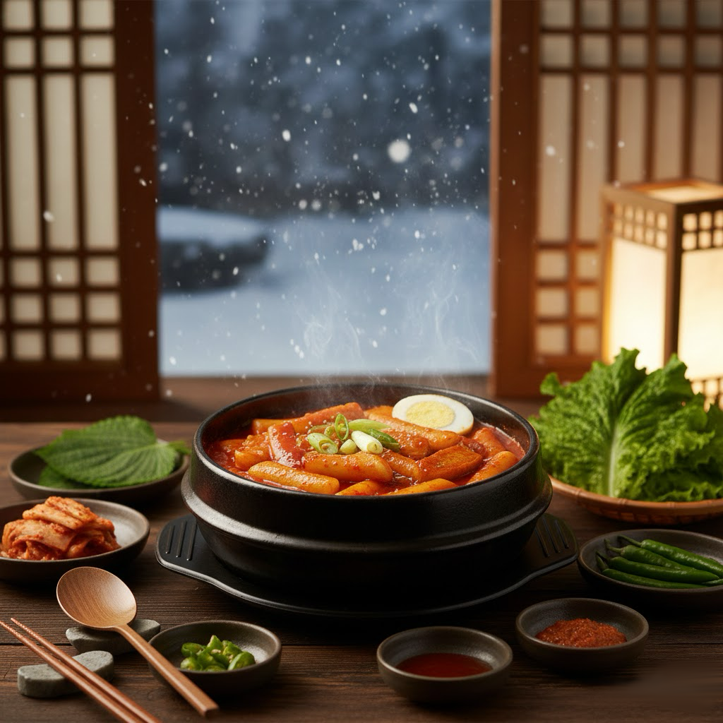 Токпокки — рисовые клецки в соусе.
