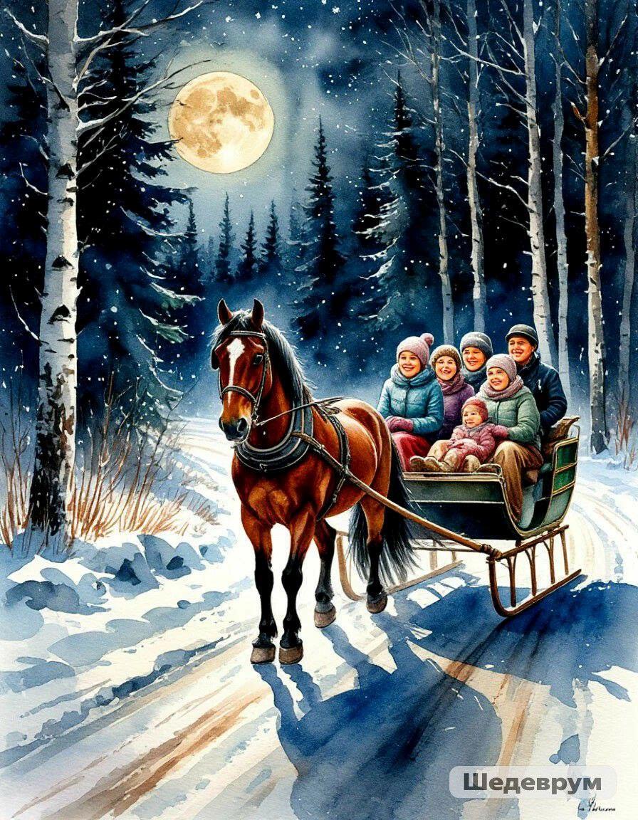 Все расселись в санях поудобней. Одна Анна Леонидовна встала на колени лицом вперёд.
