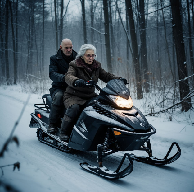 А вот Вальпургии Карловне снежная зима в радость. Всё потому, что у неё есть снегоход, и она ещё других на нём иногда катает: