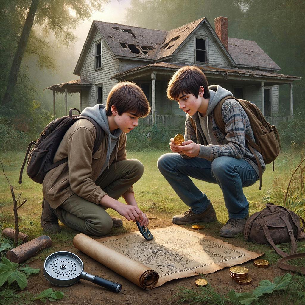 - Смотри, около заброшенного дома без окон двое подростков копаются с металлоискателем! – заметила она.