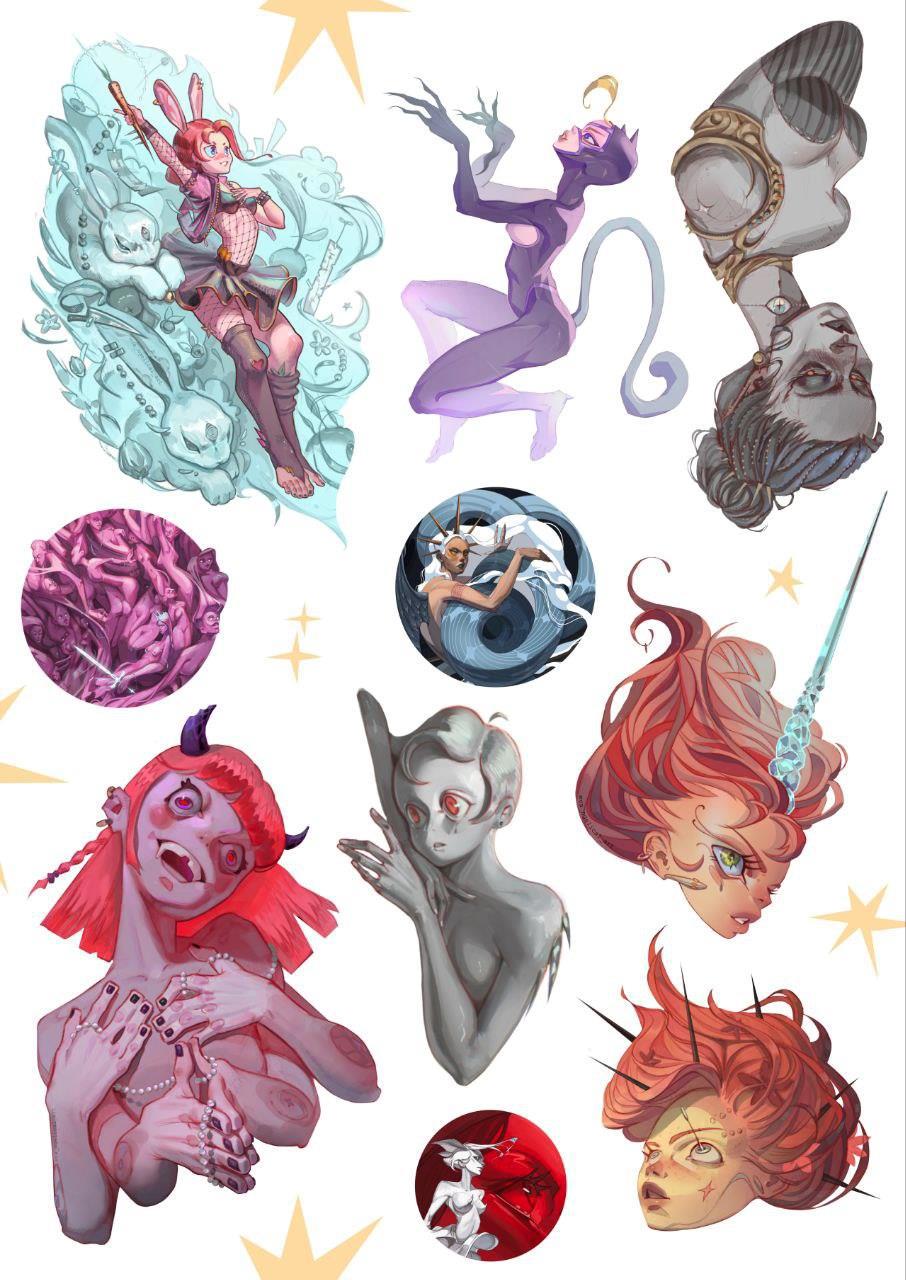 Немного ее работ в стикерах: