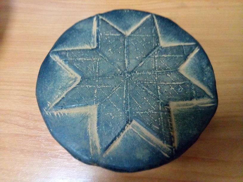 Оказалось, не ошибся. Но, приехав в субботу, для начала выдавил на звездчатом полировальнике новую звезду (поскольку старая заплыла) и по-новому процарапал канавки. Вот он, этот полировальник, после использования: