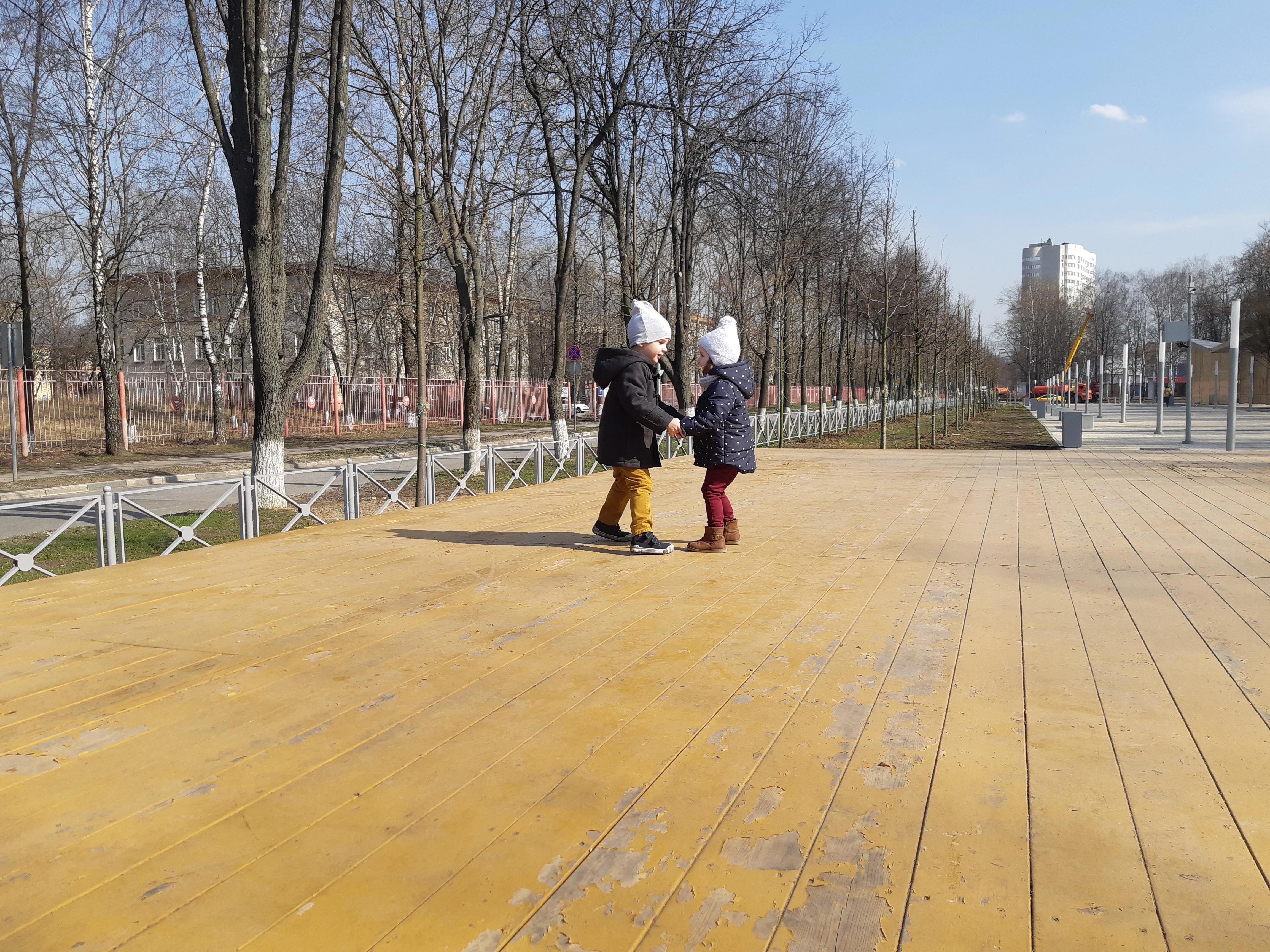 Картинка для отвлечения внимания. Два неадекватных тела танцуют на пустой сцене в апокалиптическом парке.