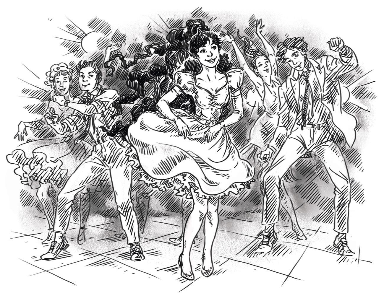 Сначала я хотела сделать Машу "помедведистей", ведь рок-н-ролл тут медвежий. Но Оля решила, что всё хорошо в меру, и девочке надо бы позу сделать поженственней )).