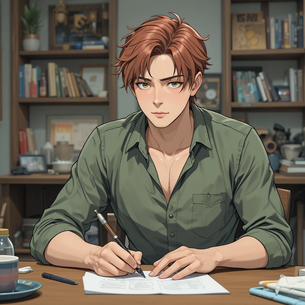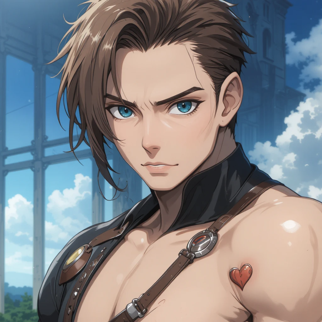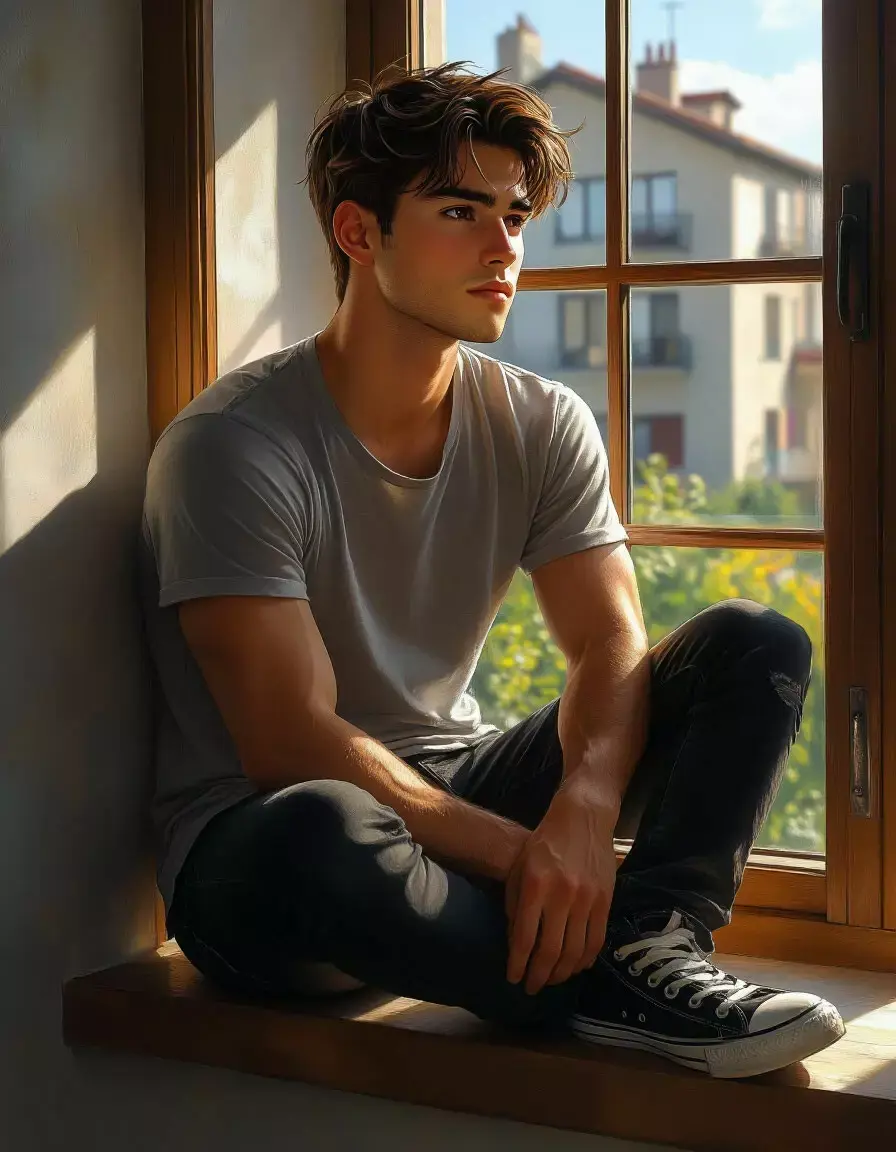 Рост 1.79 м, глаза темно-оливковые. Цвет волос: каштановый, на левом плече тату в виде маленького сердца. Высокий молодой мужчина, привлекателен для женщин.