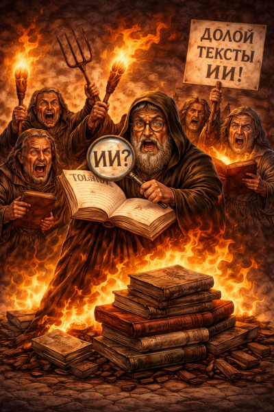 Писателя обидеть горазд каждый — особенно это обожают делать диванные «критики и заклёпочники». Вооружённые клавиатурой, чашкой чая и непоколебимой уверенностью, что именно только они знают, «как надо», с упоением разбирая чужие тексты на атомы. Опечатки? Ща найдём! Корявые метафоры? Ща выявим! «Неправильные» сюжетные повороты? Ща разоблачим! Будто забыли, что сами в лучшем случае осилили лишь список покупок в супермаркете. А уж про секту борцов за «чистоту слова» и говорить нечего. Эти ревнители лингвистической непогрешимости готовы сжечь на костре «литературной инквизиции» любое отклонение от их воображаемых канонов. Дошло до полного маразма: они прогоняют через ИИ-детекторы тексты классиков, проверяя, не сгенерировал ли случайно Лев Толстой «Войну и мир» с помощью ИИ, а Пушкин не пользовался ли ChatGPT для создания «Евгения Онегина». Видимо, в их картине мира Достоевский просто не мог без нейросетей выдать такую психологическую глубину, а Гоголь — столь виртуозно играть с абсурдом. Увольте, дамы и господа — ИИ тогда не существовало!