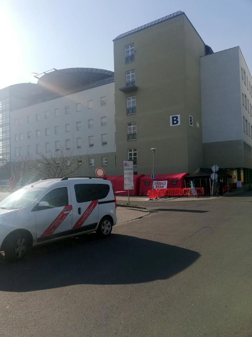 Корпус скорой помощи в Устецкой больнице. На крыше видна посадочная плошадка для вертолёта, внизу красная палатка КПП![]() | Перед этим КПП санитары в форме и поверх неё в хирургических одноразовых халатах. шапочках. масках КН95 + рукавичках загрузили сумку с одеждой, зарядным устройством и печенюшками в обычный пакетик. И заклеили скочем с именем Мартина и отделением. куда это отдадут.![]() |