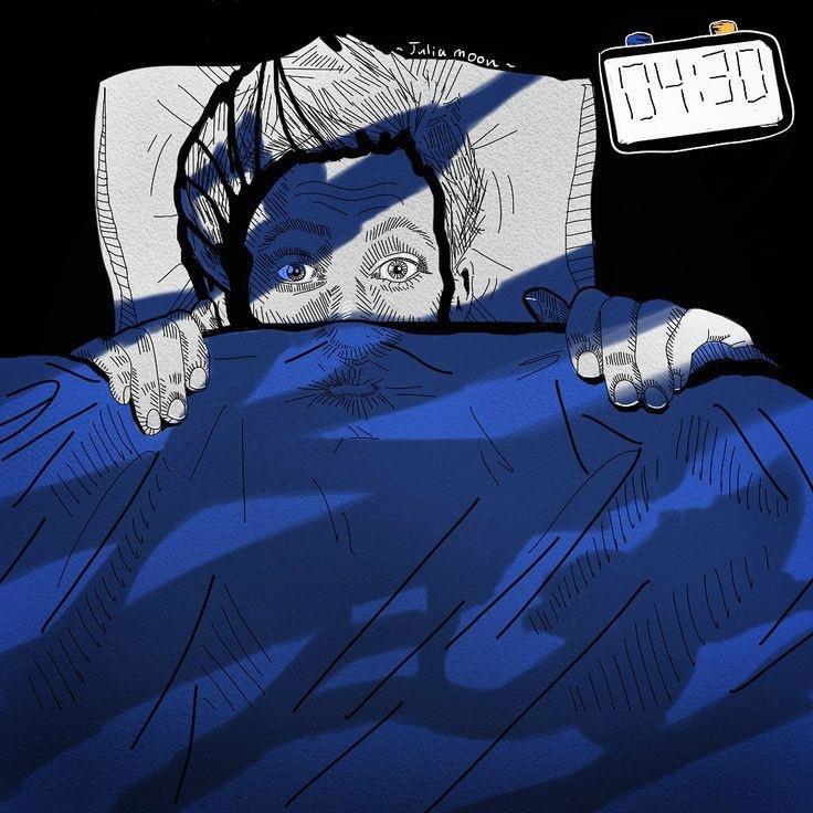 Часы показывают 04:30 утра, а мозг решает устроить вечеринку для всех моих мыслей- и, конечно же, пригласил диджея по имени Тревога, который ставит на репите хиты "А вдруг ты забыл включить будильник?", "Ты завтра обязательно облажаешься на работе". Тишина становится настолько оглушительной, что ты начинаешь слышать, как бьётся пылинка о лампочку. Соседи сверху, кажется, решили устроить ночной марафон по чечётке на паркете, а где-то вдалеке, как резаная, орёт кошка, требуя включить ей шестой сезон любимого сериала. Тело тоже решило не отставать и включило режим "виброзвонок": то ногу сведёт судорогой, то нос начнёт чесаться с упорством археолога, раскапывающего кости тираннозавра. Постельное бельё превращается то в раскалённую пустыню, то в ледяную Антарктиду, а подушка становится неудобной, как мешок с картошкой.