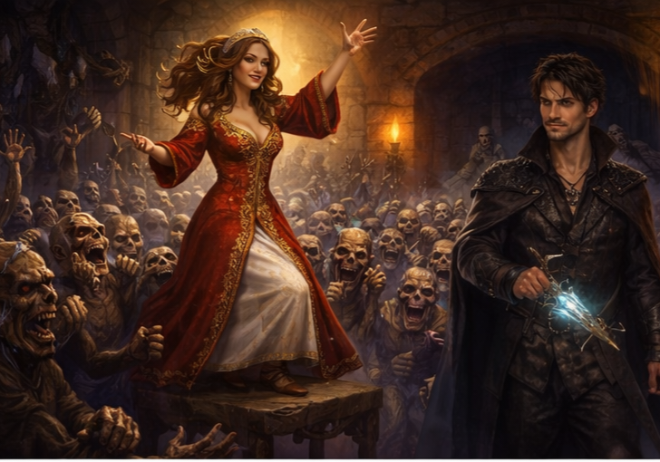 Она не ошиблась. Едва они переступили порог, как из темноты на них вывалилась толпа живых мертвецов. Не тупые зомби — а быстрые, злобные, сообразительные и, что особенно раздражало, очень настойчивые. Василиса на автомате двинула одного табуреткой, другой отлетел, третий споткнулся… но все тут же встали обратно, как будто у них была подписка на вечную жизнь. Один из трупаков даже аккуратно поправил себе голову, которая до этого съехала на бок.