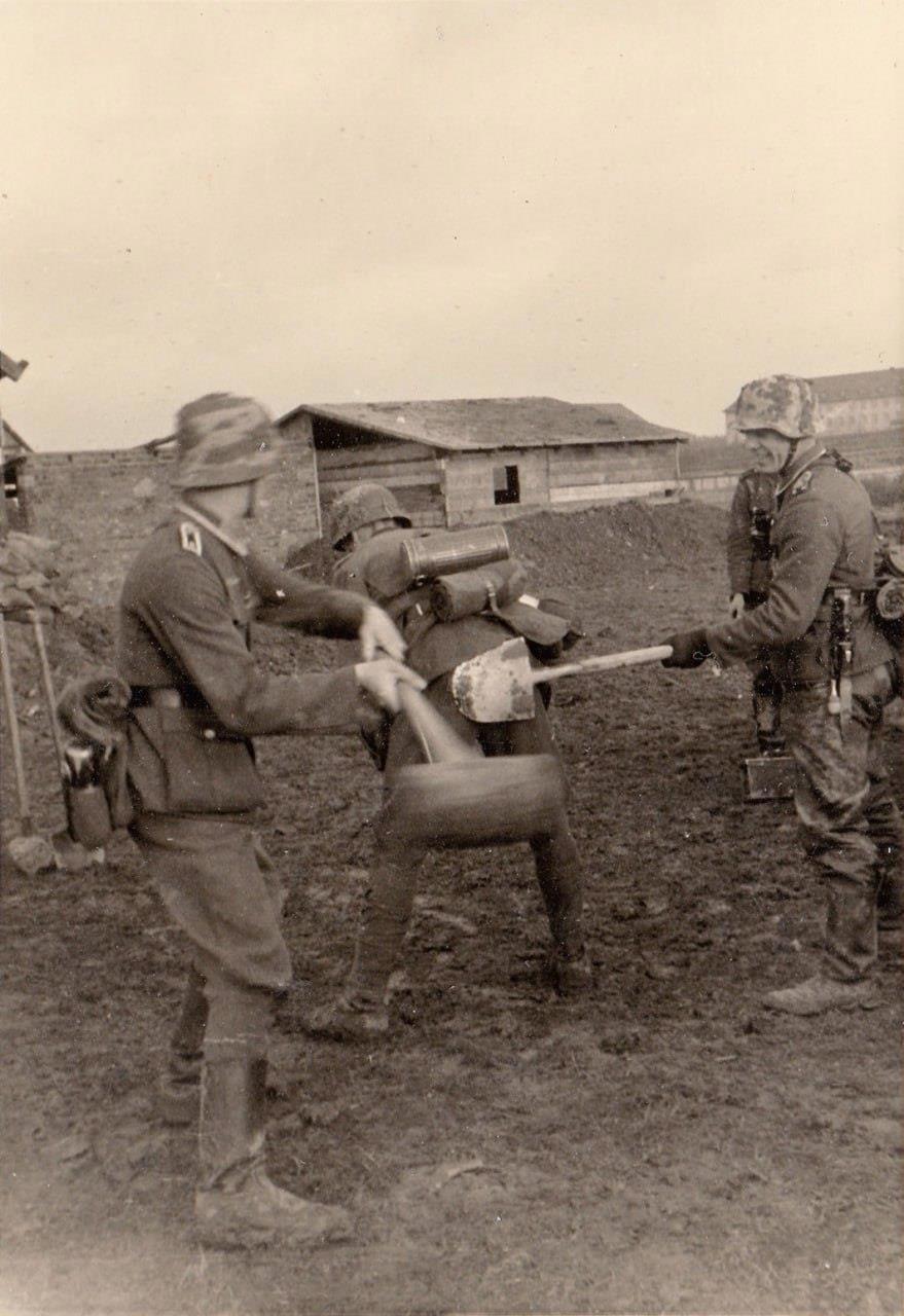 Наказание за лень во время копания окопов. Вместо простого человеческого "лопатой по жопе" немцы и тут все переусложняют.