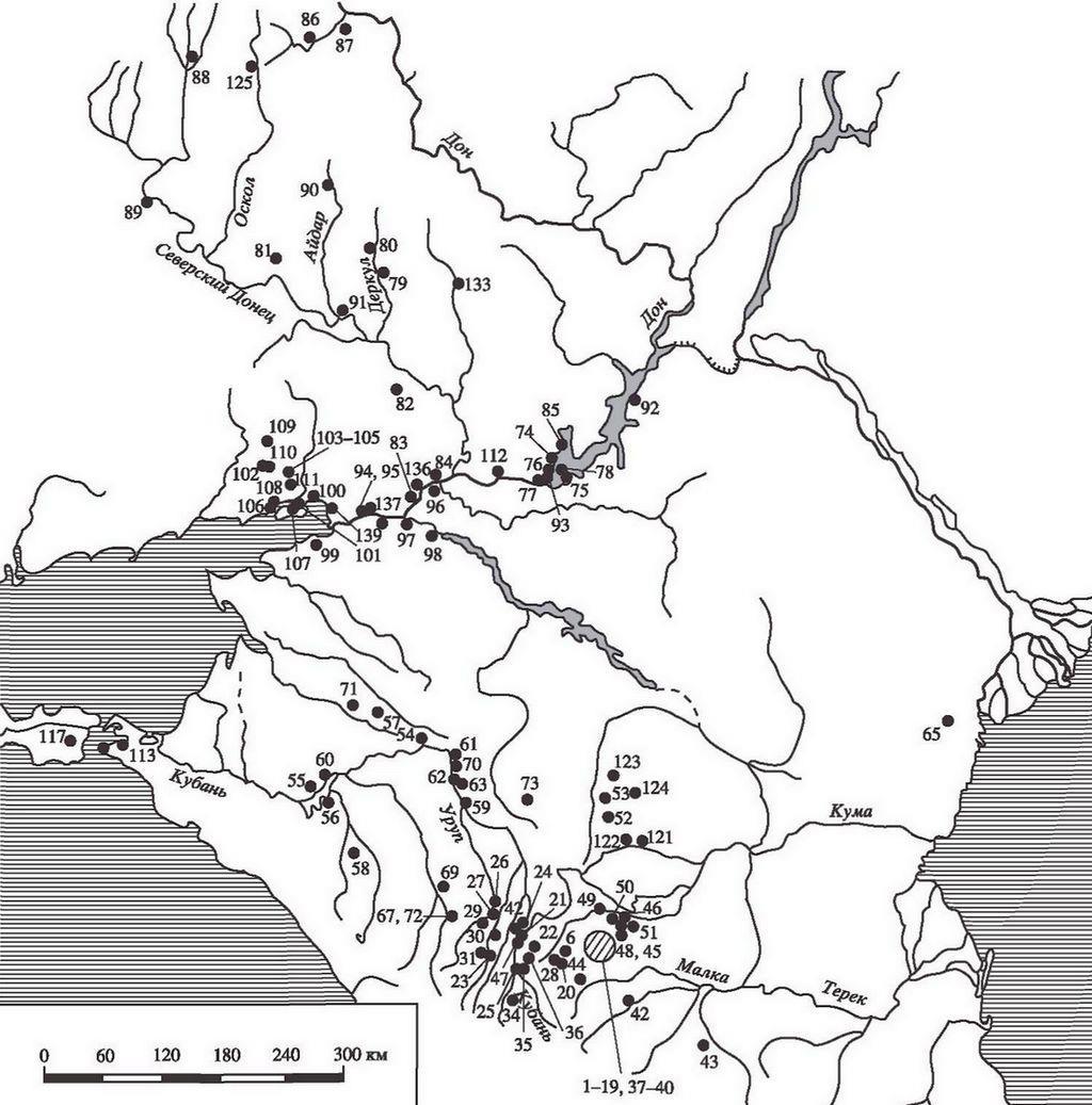 Хорошо. Пусть будут аланы. Однако место для алан историки определили на территории современного Дагестана, а горшки находят на нижнем Дону в основном и немного на западе Северного Кавказа. Далековато вообще-то от Дагестана. На карте Плетнёва показывает центром гипотетического Хазарского каганата Дельту Волги, однако в наших краях ничего даже отдалённо напоминающего Саркел с Маяцкой крепостью никто не находил, хотя искали со всей ответственностью и до сих пор стараются.