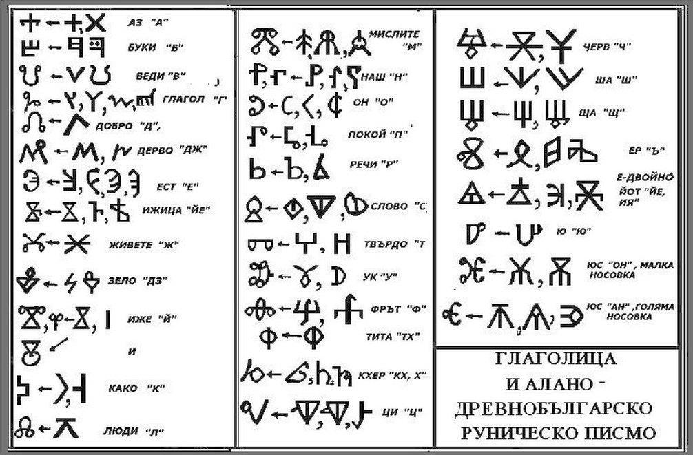 А потом с таким же умным видом предлагают посмотреть на вот такую «глаголицу» вроде бы «алано-булгарского» происхождения: