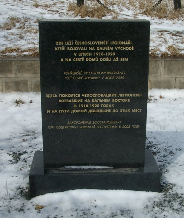 "Здесь покоятся чехословацкие солдаты, храбрые борцы за свободу и самостоятельность своей земли, России и всего славянского братства. В братской земле отдали жизни за возрождение человечества. Обнажите головы перед могилой героев."