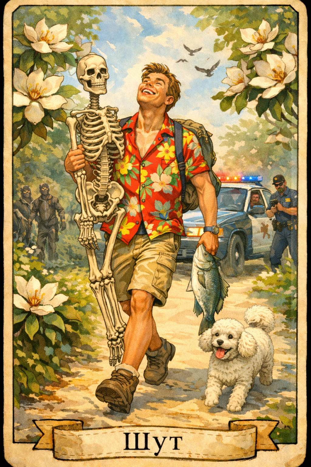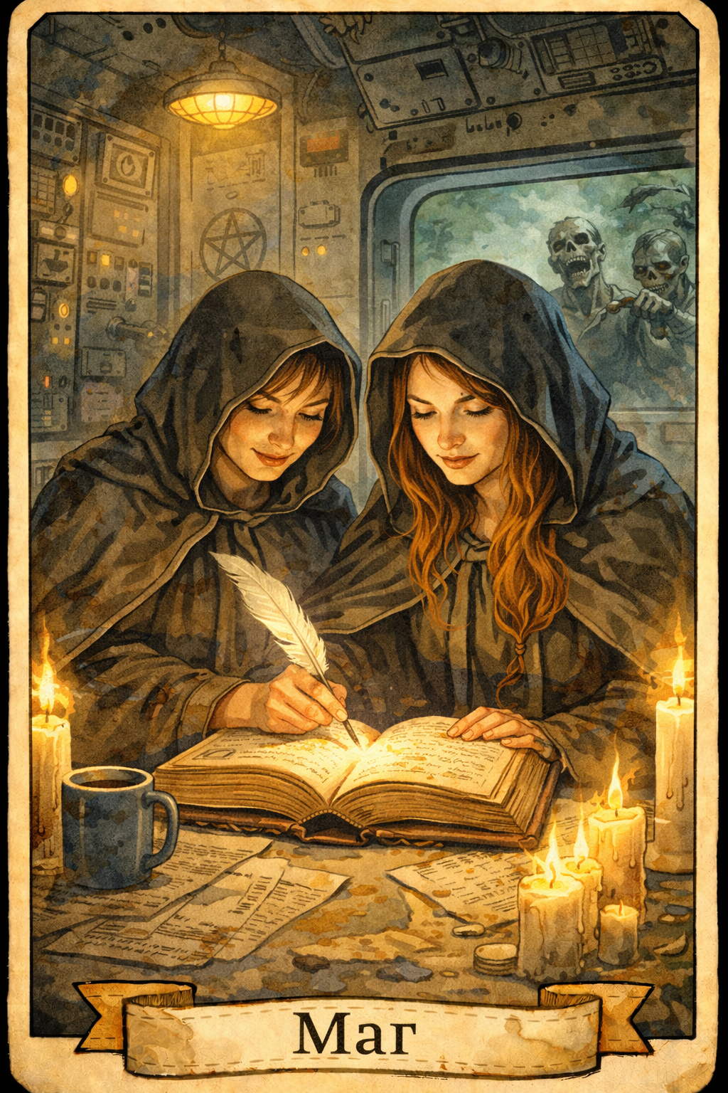 Но мой деятельный писательский ум не мог упустить такую возможность повертеть собственных персонажей хотя бы из "Берега мёртвых" на предмет тарошных архетипов. Сага сия велика есть, персонажей там хоть отбавляй, так что на все 78 карт хватило )) Подсказывал мне мой добрый Gemini. А рисовал чат ЖПТ.