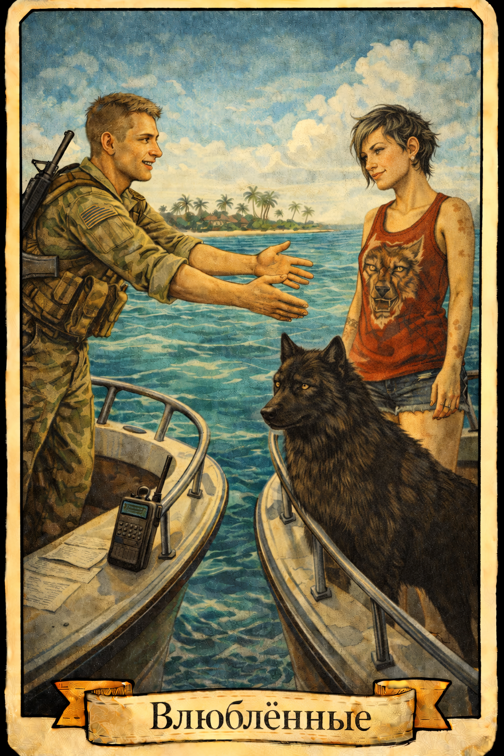 Иерофанта я по невнимательности пропустила, сгенерю попозже. Зато какие Влюбленные! Майк и Блу, встреча после безумно долгих поисков, когда и надежды не осталось. Карта выбора в любви.