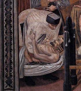 Художник уверен - всех вылечат. Не зря он такой консилиум нарисовал. А ещё для убедительности добавил толстячка-патера со святой водой. Патер стоит пригорюнившись - некого отпевать.