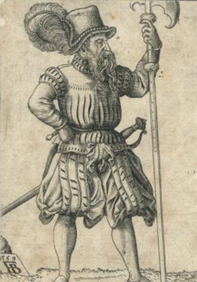 - Doppelsöldner (солдаты на двойном жалованье, как герой на нашей гравюре) получали 8 гульденов. Это были огромные деньги, сопоставимые с годовым доходом мелкого ремесленника.