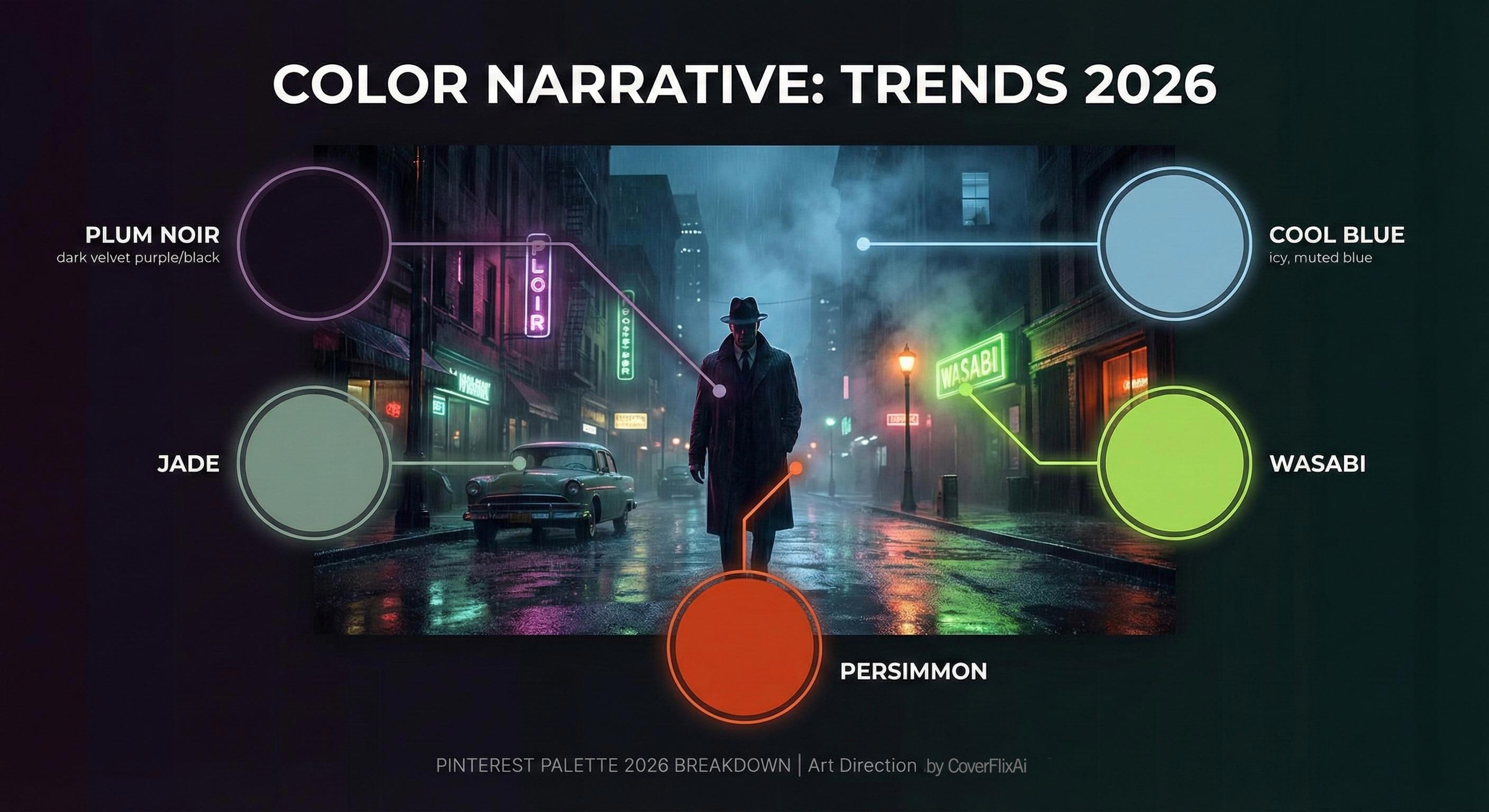 Pinterest проанализировал миллиарды запросов и выкатил «Палитру 2026». И как моушн-дизайнеру, мне интересно смотреть на эти цвета не просто как на «модные пятна», а как на инструменты сторителлинга. В этом году тренды удивительно кинематографичны — от нуара до киберпанка.