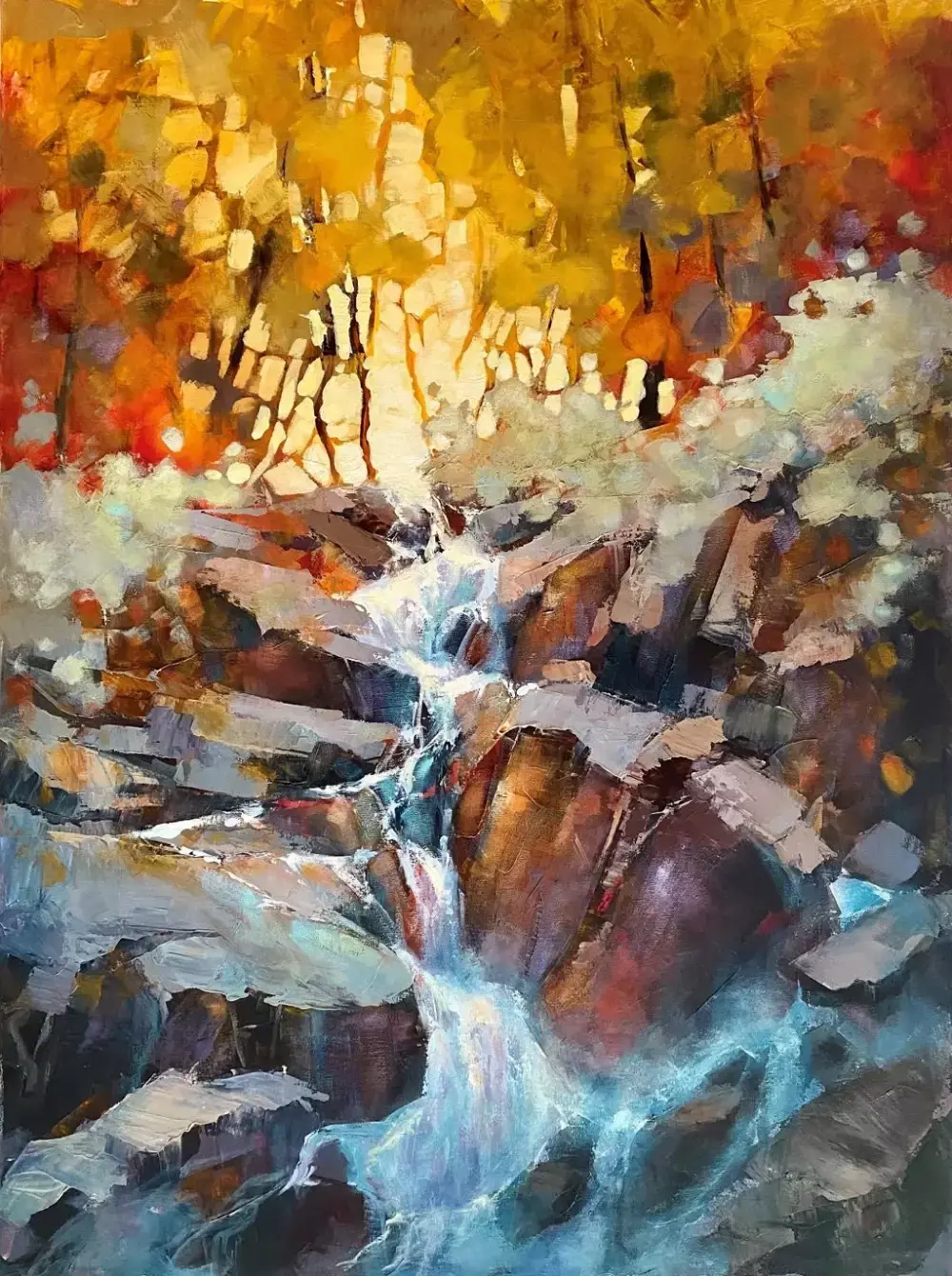 Уайлдер мастерски использует мастихин для создания объемных, почти осязаемых поверхностей, что придает ее картинам скульптурную глубину и заставляет свет физически играть на неровностях акрилового слоя.