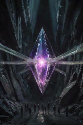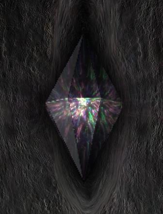 Обернувшись Тефис увидел, огромный скованный черный кристалл, излучающий разные оттенки света.