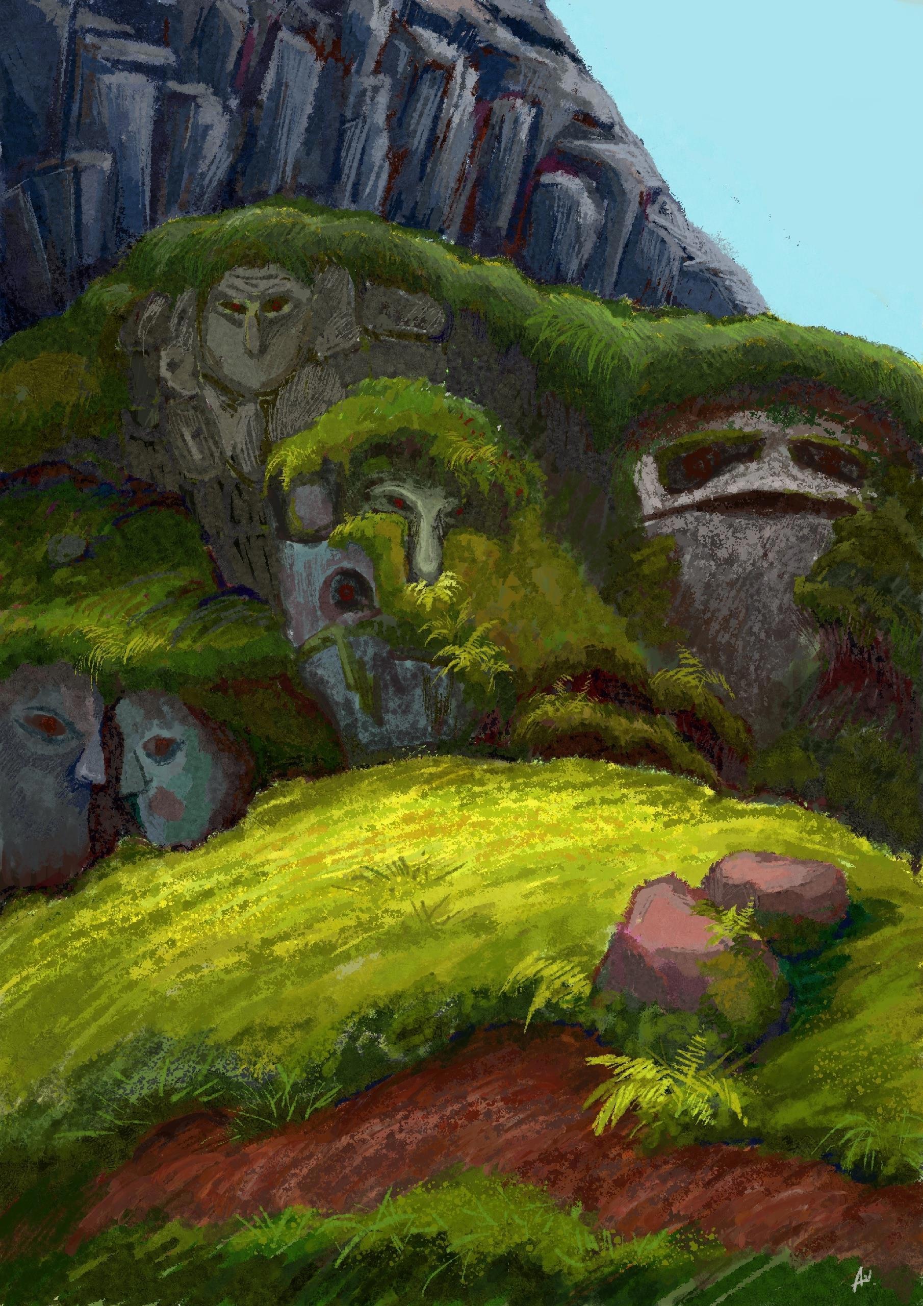 - «Каменная голова? Великаны? Так вот, что это было!» - подумал он, глядя на то, как рядом прорезаются глаза еще у нескольких камней. – «А где у них туловища?»