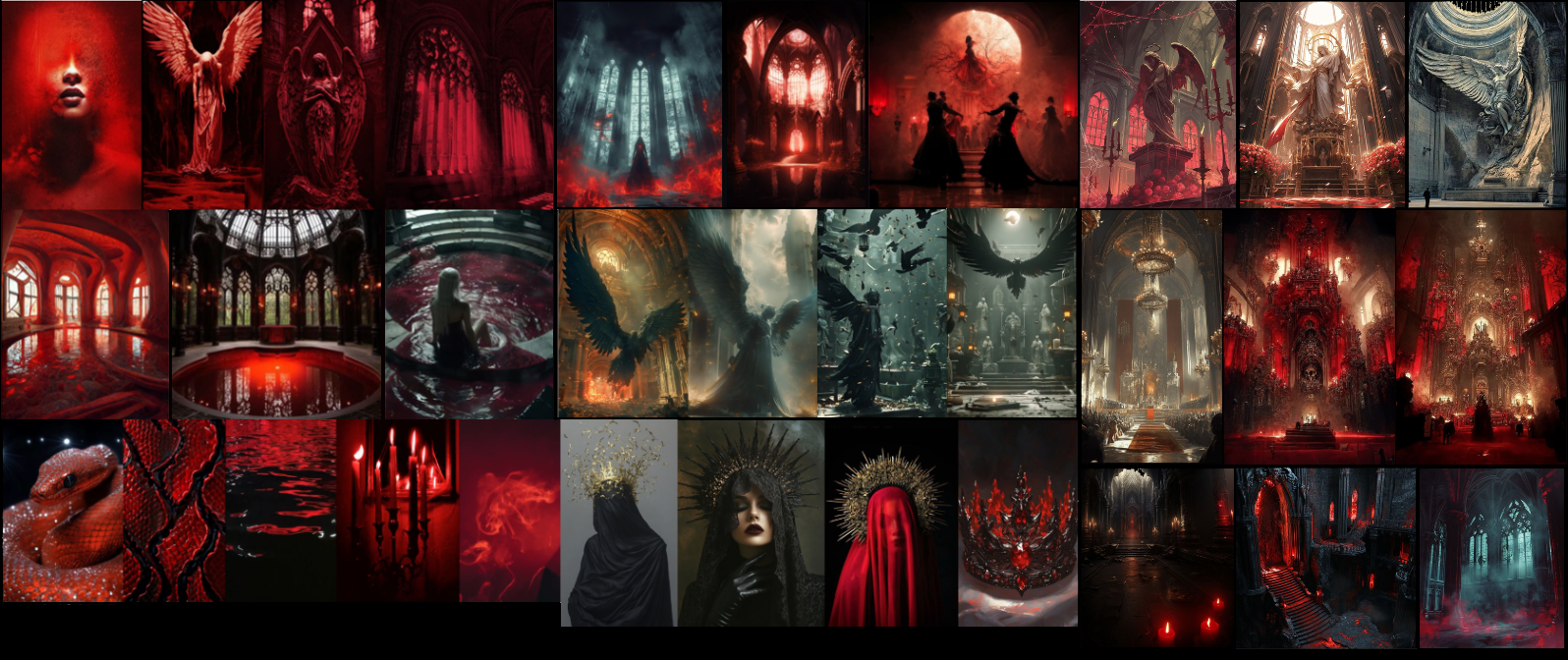 Церковь вампиров. В рамках первой книги мне, к сожалению, не удалось чётко прописать всё, что хотелось: концепцию, принцип, ритуалы, священную книгу, атрибутику, артефакты и даже образ ангелов. Ко второй книге обязательно наберусь опыта  и сил. Также, в ритуалы 15 главы входили духи замка. Когда дошло дело до них, я поняла, что как бы они ни были важны, их тоже получится описать только в общих чертах. Может быть, даже, что получилось какое-то аниме. Так что, оставляю на ваш суд.