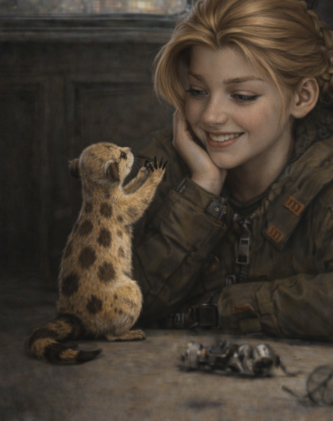 Михаил продолжил развитие темы "Чара и Косичка", сделав время действия ночным и добавив милаху-йонгера, внешний вид которого он же и разработал.