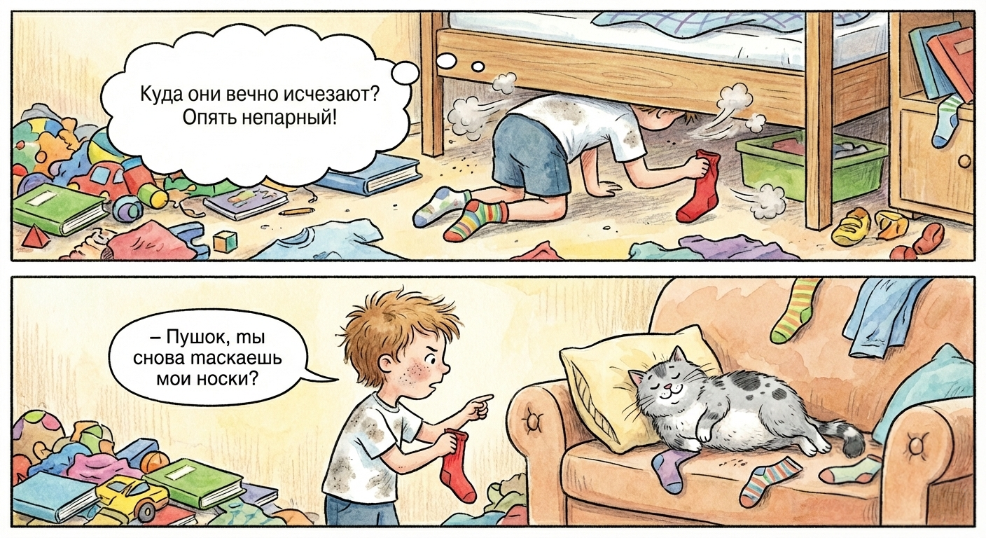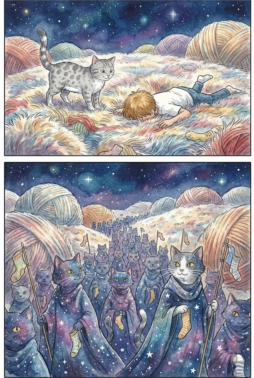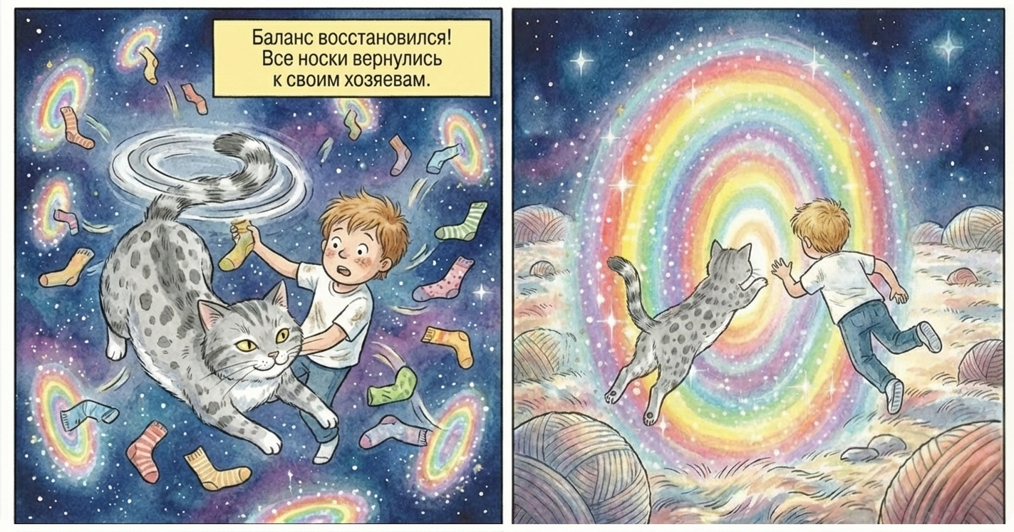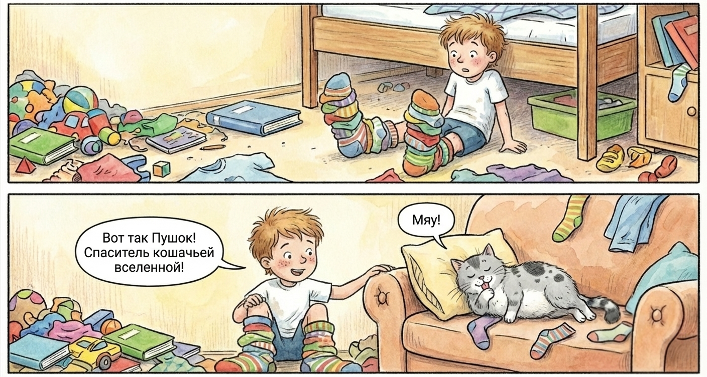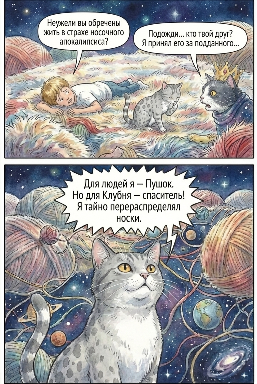 Это веселое и абсурдное путешествие мальчика Васи и космического кота Пушка. Первая история из сборника их приключений.