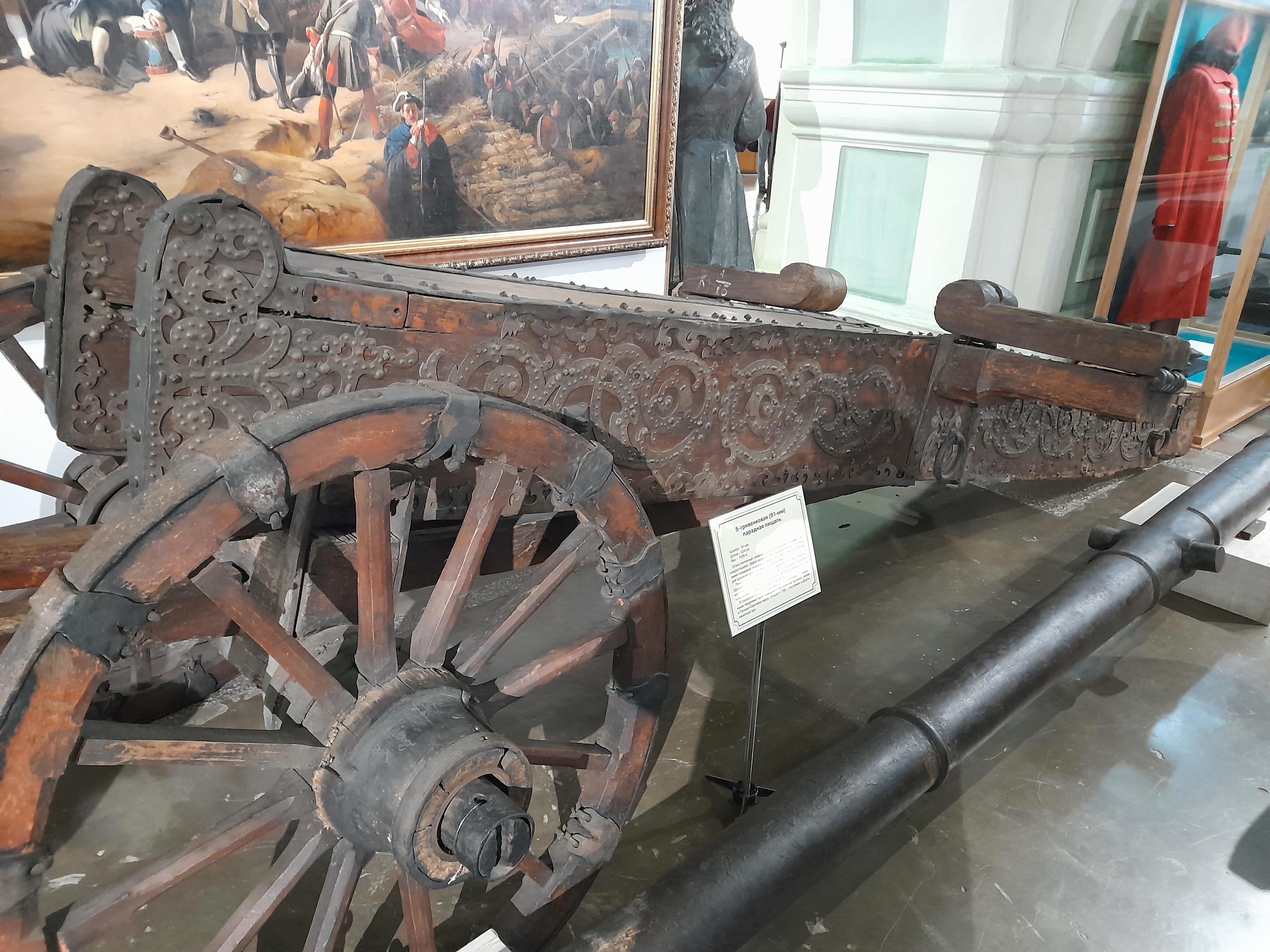 Ея колесный лафет. Справа - интересный станок трехлапый для среднего между пушкой и мушкетом ствола.