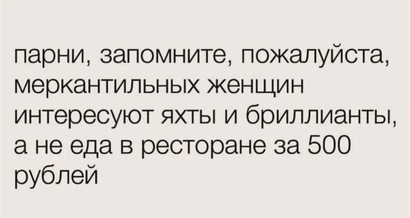 В общем не будьте как дамы типажа "дуры и больные" , будьте поскромней и повежливей , ведь лучше быть работающей и благородной которая знает ценность в отношениях чем жабой которая квакает и говорит "дай , рестораны рестораны " .
