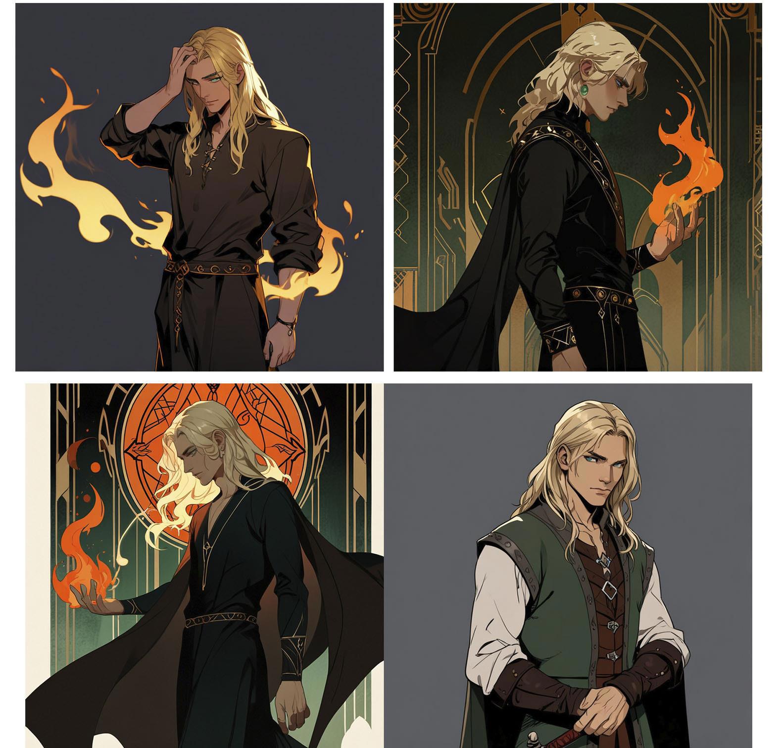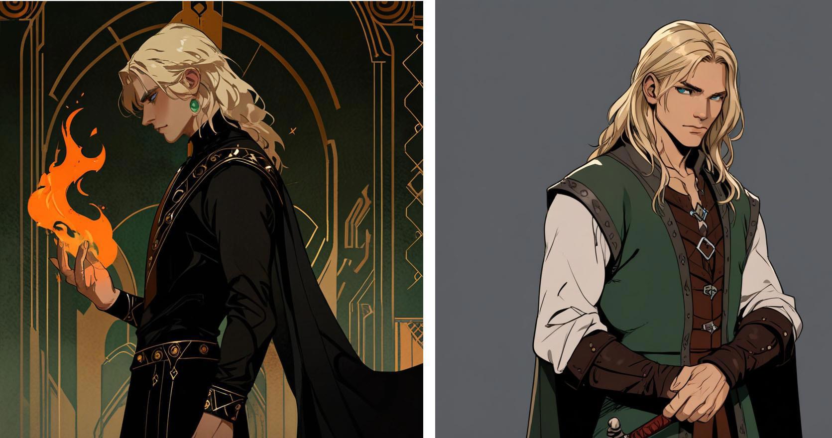 Далее, мужской персонаж. Как я уже писала, не удалось создать ни одного арта, подходящего по всем параметрам. Так что придётся лепить из разных кусков, аки Франкенштейн.