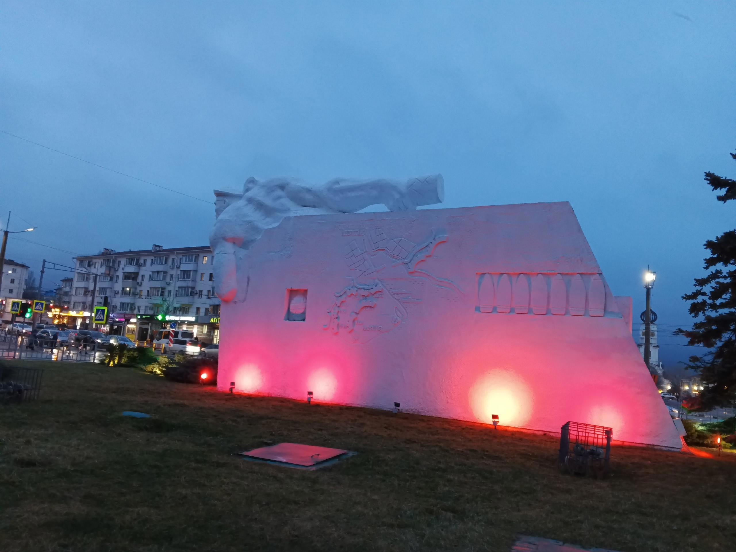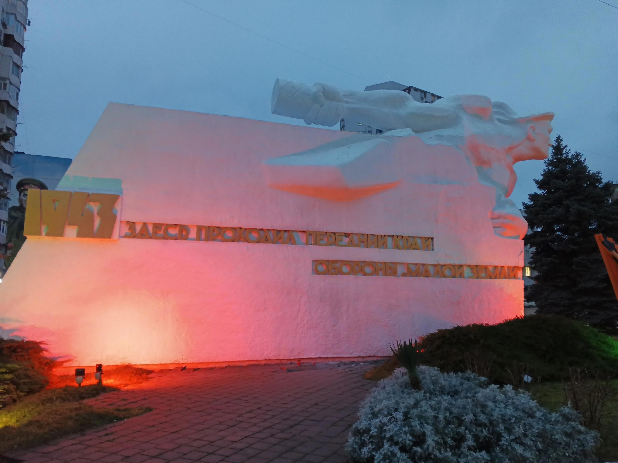 Подсветка в точности соответствует отсветам пожарищ, которые полыхали здесь в 1943 году. Фото Галины Малышевой.