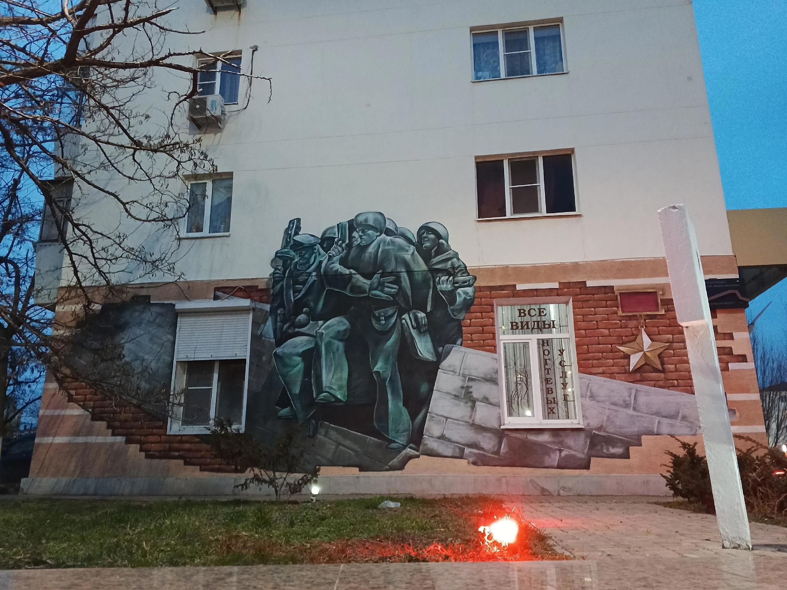 Напротив памятника огромное граффити посвящённую Малой земле. Фото Галины Малышевой.