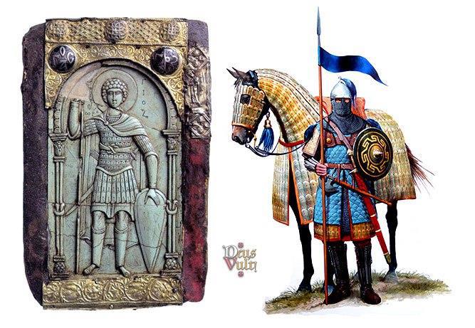Катафрактов порой называют "византийскими рыцарями". Сходство и правда есть, особенно если говорить о количестве и тяжести доспехов. Однако в отличие от Западноевропейского рыцарского ополчения, они были достаточно дисциплинированы, организованы в постоянные части, и даже имели (это было общей чертой Византийской армии) элементы униформы: плащи и пучки конских волос на шлемах определенного цвета, обозначавшего принадлежность воина к тому, либо иному подразделению.