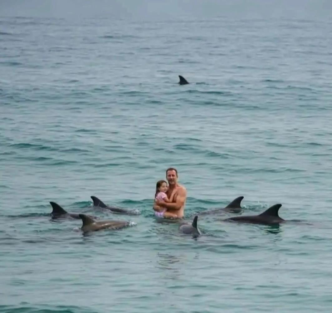Роб Хои, британский пловец, плавал вместе с дочерью в водах у Северного острова Новой Зеландии, когда внезапно произошло нечто необычное. Внезапно из глубины появились несколько дельфинов, которые начали плотно кружить вокруг них и осторожно направлять к центру. Каждый раз, когда Роб пытался отплыть, пара дельфинов возвращала его обратно, словно оберегая от невидимой опасности.