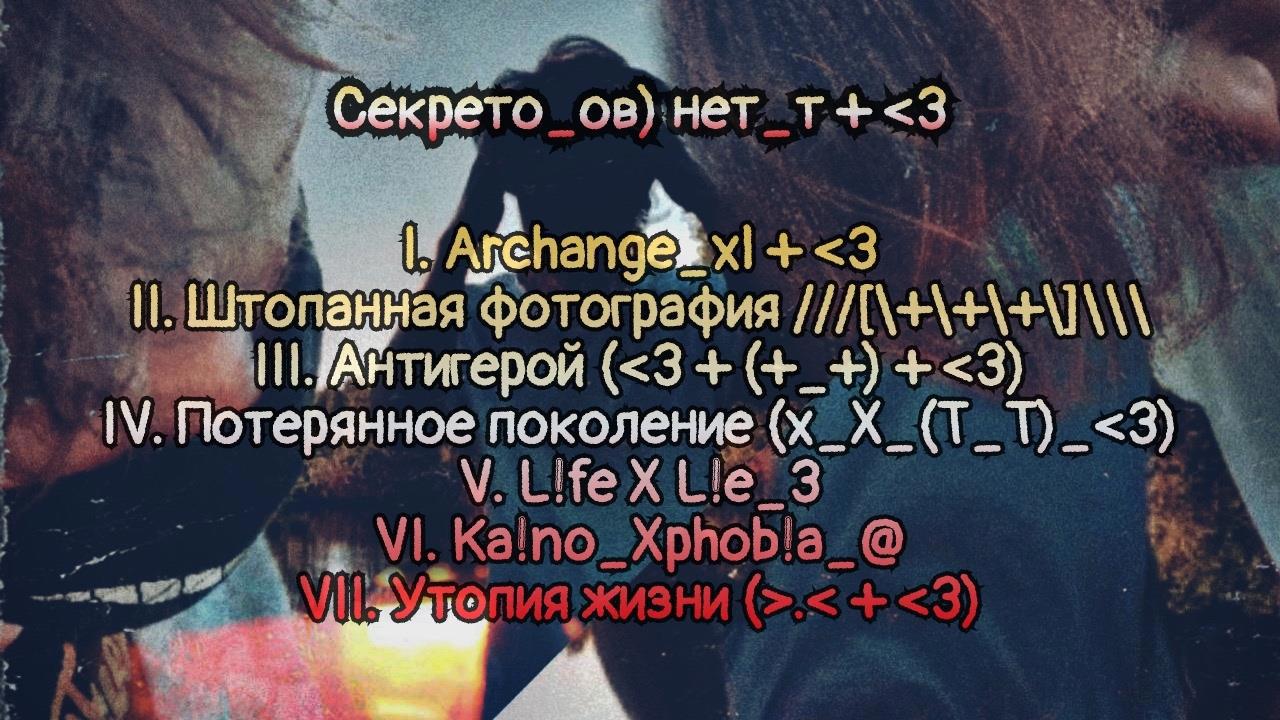 Официальное оглавление сборника «Секрето_ов) нет_т + <3» (было изменено по ряду причин).
