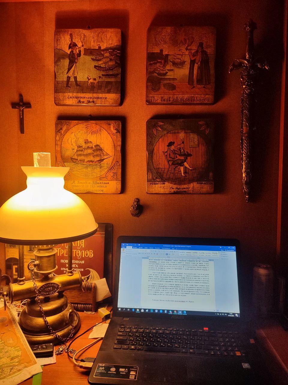 Сижу, пишу. Думаю. Перед глазами - реплики американских гравюр XVIII века, и - о, чудо! - подделка под фэнтезийный меч. Он прям реально металлический, годится и для убийства, и для вдохновения (фото).