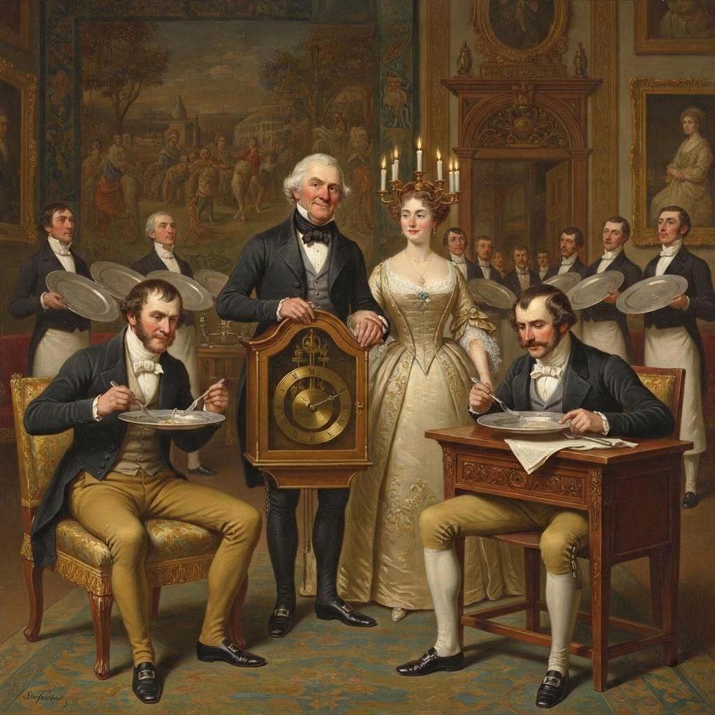 Представьте: вы приходите к лорду, надеясь на изысканные вина, а на пороге вас встречает хозяин в костюме напольных часов (с работающим маятником в районе живота). Среди гостей — дама-канделябр, которая весь вечер стояла с зажженными свечами на голове, и джентльмен, изображавший пуфик, на которого все пытались присесть.