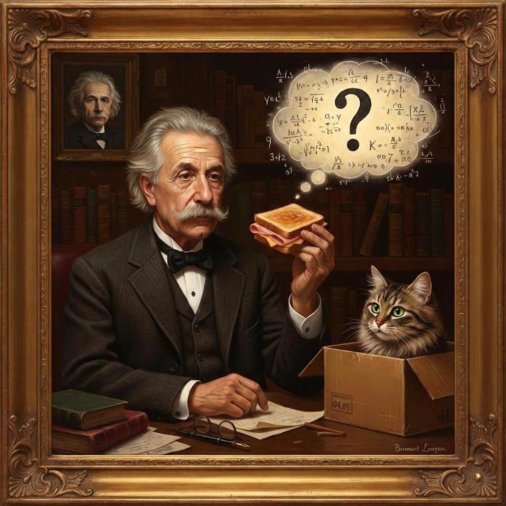 Этим вопросом, возможно, задавался великий Эрвин Шрёдингер, отец той самой кошки. У него была странная привычка: он мог часами смотреть на свой бутерброд, размышляя о его природе. Некоторые коллеги даже шутили, что он пытался выяснить, жив ли бутерброд или мертв, пока его не съедят.