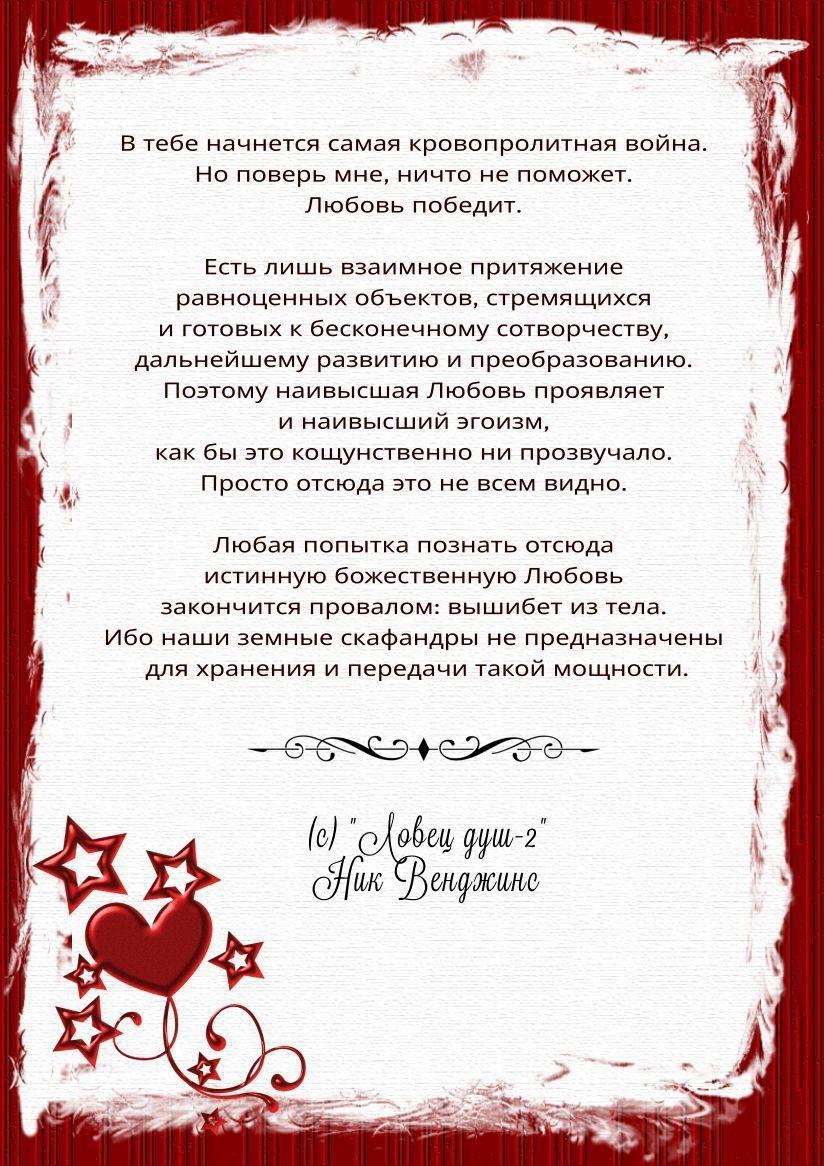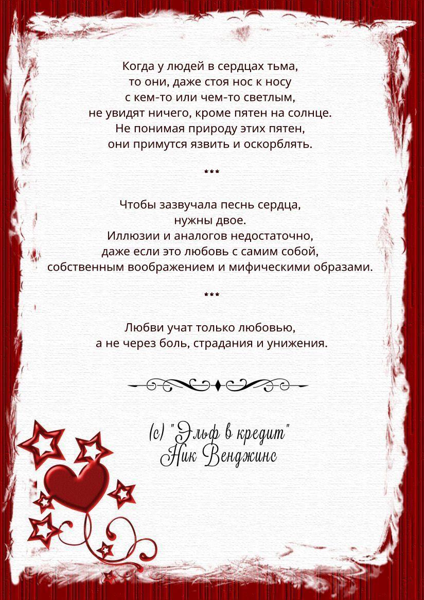 Автор: Ник ВенджинсКажется, тут был флешмоб на эту тему в контексте приближающегося праздника. Но я, как обычно, прошляпил. Зато потом занялся интересным делом. Показываю, что думают и говорят о любви персонажи моих книг.
