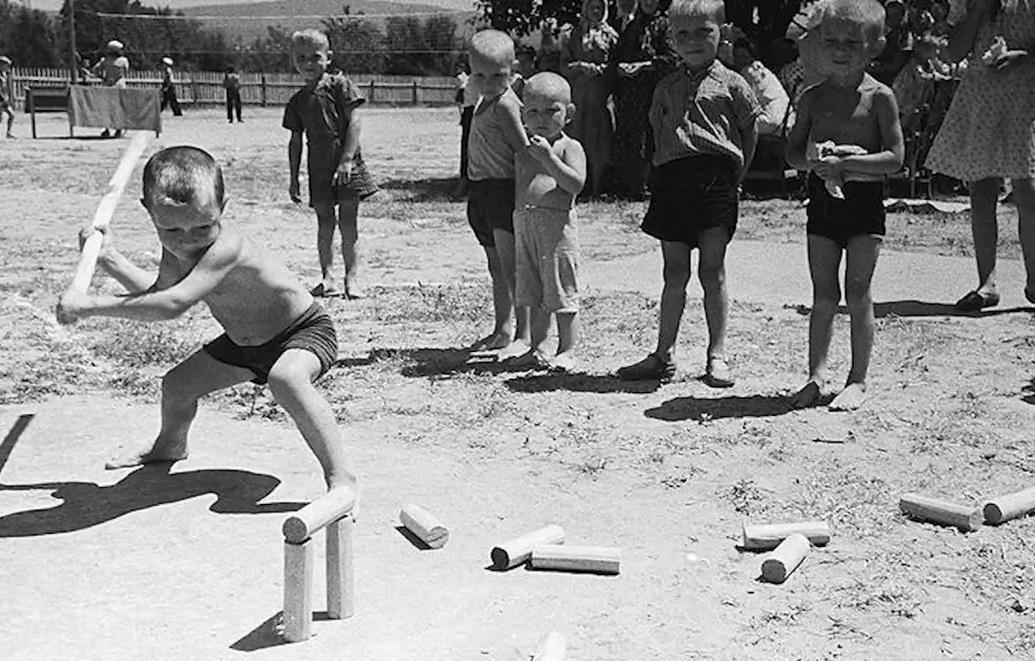 Дети ждут, когда взрослые уйдут к столу за добавкой... Тогда и они смогут биту побросать.