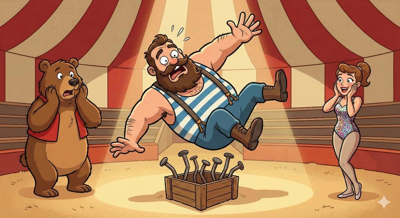 Да у меня получилась цирковая бригада на выезде "ПотапычЪ и Соньки"... Туту -туду -ру -ту-туду... На арене цирка русский богатырь Иван Говно… из под купола цирка жопой на ржавые гвоздик...